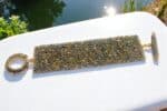 Ein besonderes Highlight dieses Perlenarmbands ist der aufwendig gefädelte Knebelverschluss. Auch dieser wurde vollständig von Hand gefertigt und mit kleinen böhmischen Glasperlen verziert, die den Stil des Armbands gekonnt aufnehmen und optisch abrunden. Der Knebelverschluss in Goldoptik lässt sich einfach und sicher schließen – und ist zugleich ein echtes Designelement.