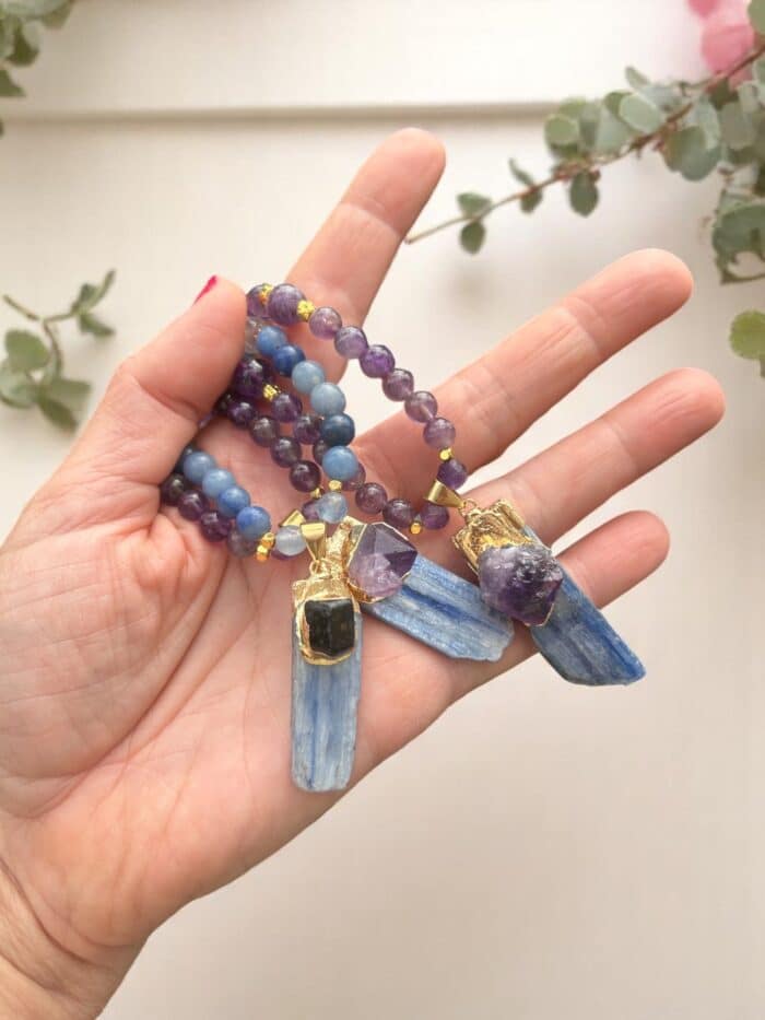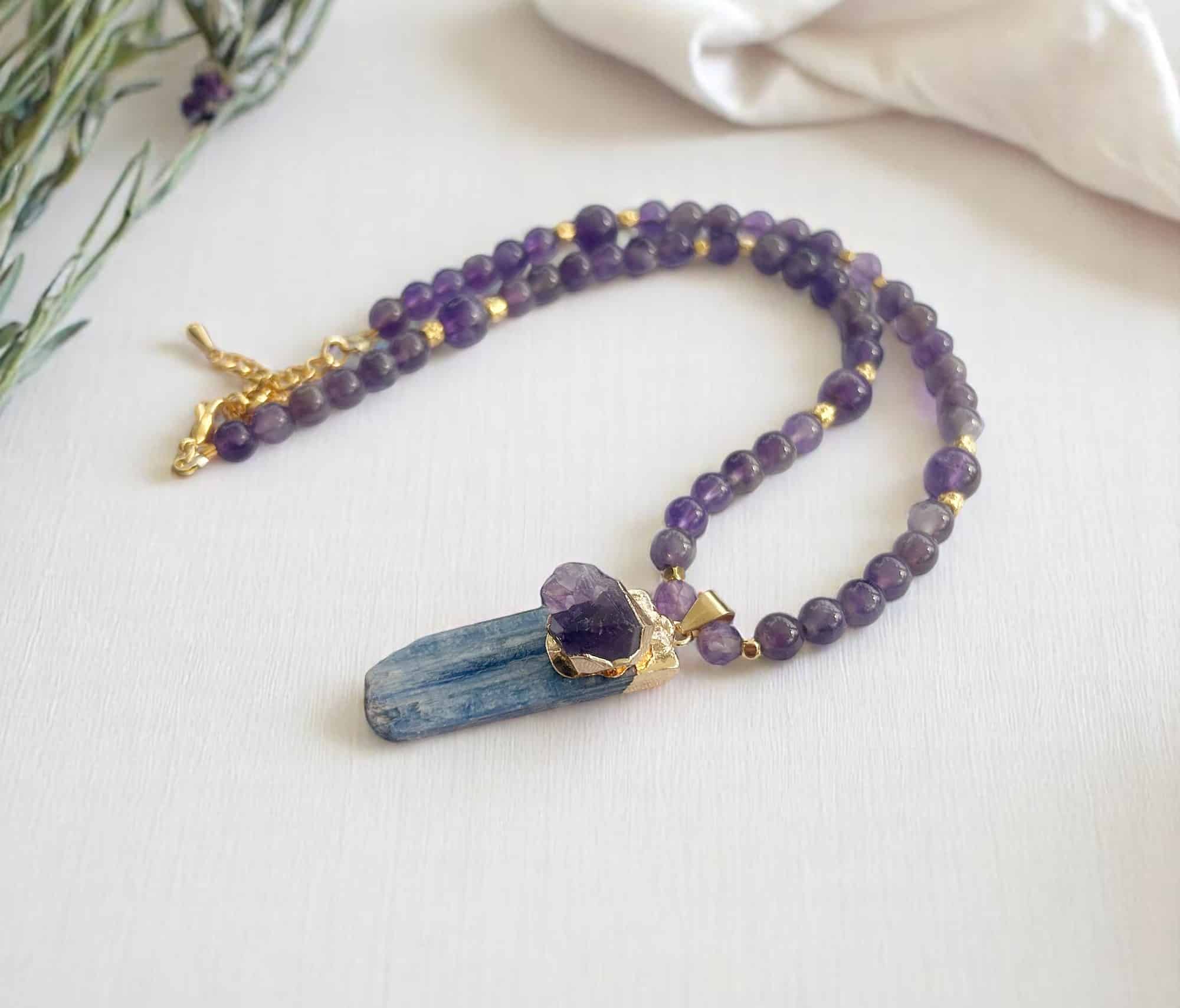 Vergoldeter Anhänger mit Kyanit & Amethyst – ein echter Blickfang