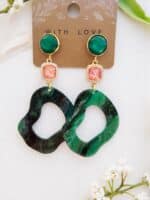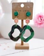 DOLFIN – Große schimmernde Statement Ohrringe in Dunkelgrün mit Glitzer & Polaris Cabochons