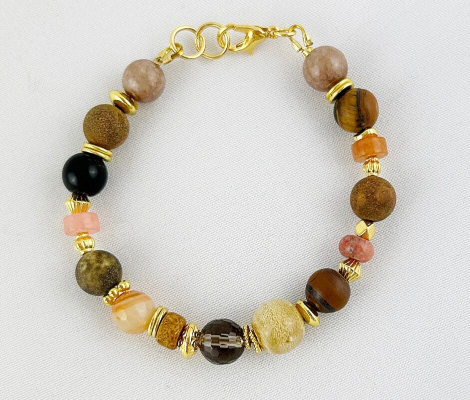 schöne Boho Perlenkette Holz Jade silber | koralle türkis
